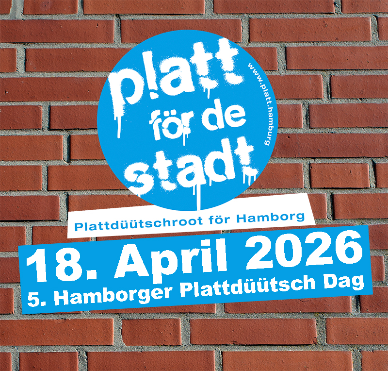 eiht wedder los! Na 2016, 2018, 2022 un 2024 schall dat 2026 den föfften Hamborger Plattdüütsch Dag geven! An all Ecken un Kanten vun uns Stadt schall op Plattdüütsch leest, speelt, sungen, preestert un snackt warrn – ok dor, wo keeneen dat överhaupt vermoden deit.